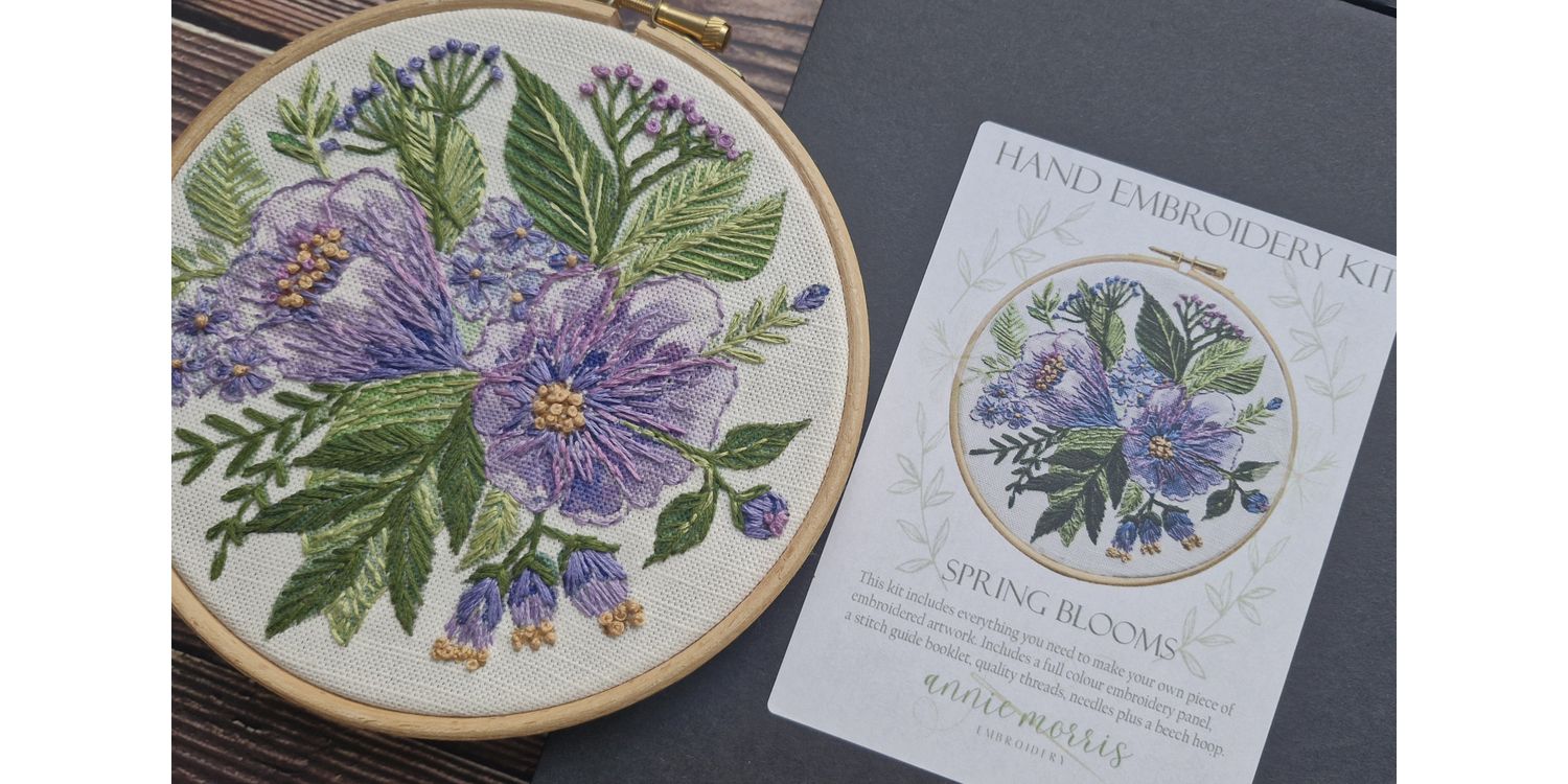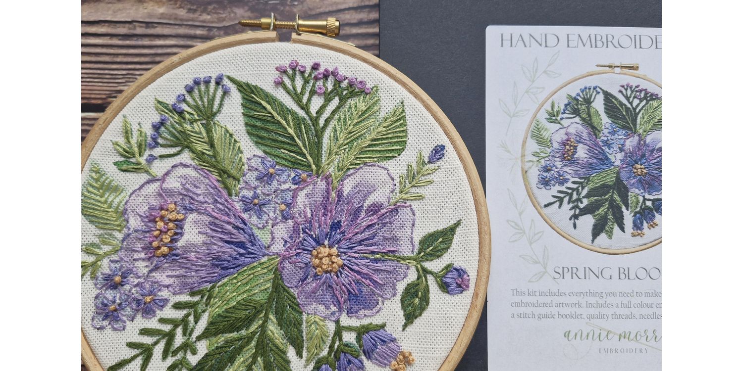 We certainly love this flower and colour combination which you can stitch how you desire. The image derives from an original watercolour by Annie, painted in her studio in Devon. The soft linen is actually stitched very simply with basic stitches but in a painterly way as if you are using the thread as your paint. Treat yourself to a creative bit of slow stitch time! We are sure that you will feel rewarded by the results.